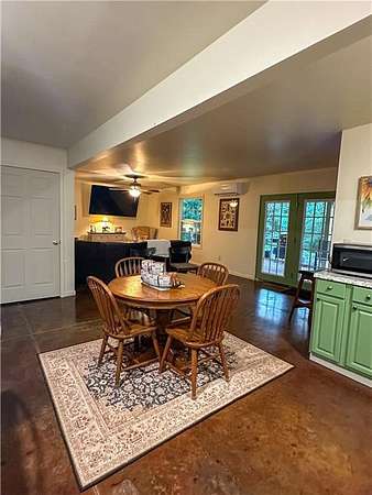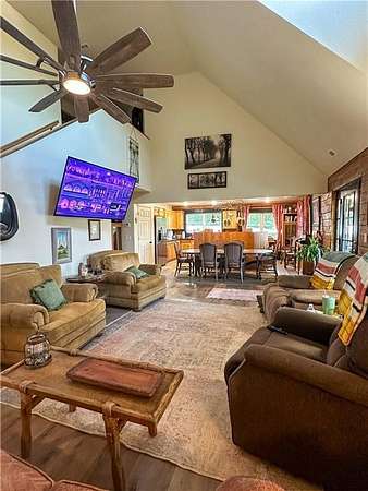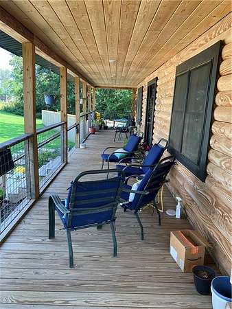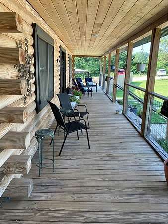 Beautiful custom log home on 2.5 acres just few miles north of Pea Ridge, one of NWA's great communities. Home has 3 levels, vaulted main living area, finished walkout basement which is a separate living area and is used as an AirBNB rental. Could be an apartment or extended family home. Huge wrap around covered porch on three sides, over 900 sq ft, looks over the above ground pool, shop and recreation area. Most of the furniture will convey. 40x60x12 red iron insulated shop with an 800 sq ft appt also used as AirBNB and/or apartment rental. Shop has 3 10x10 doors, 2 walk in doors and a 20x60 covered cement area in front of the shop with pickle ball and volleyball court. Truck lift doesn't convey but can be purchased. Looking for a great country place that's not far from everything NWA, come check this out!! Bike riding starts here!!