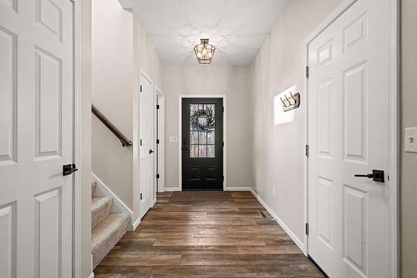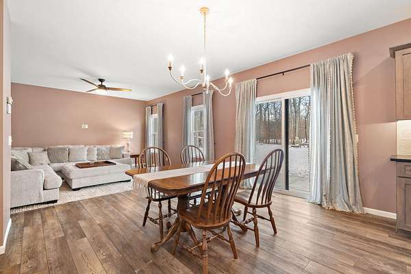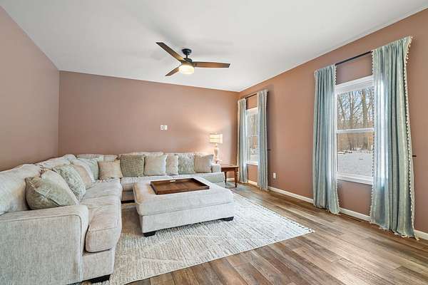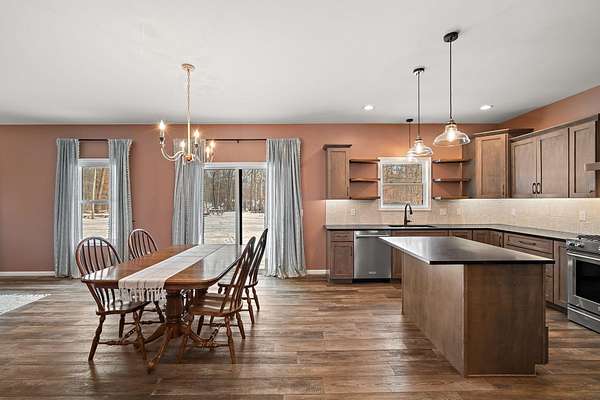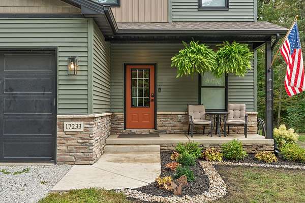 An opportunity like this doesn't come along often... welcome to your own 5 acre secluded estate. If privacy and nature are what you've been wishing for, this home and property will take your breath away. Custom built in 2021, you also have the peace of mind of a newer home! Loaded with tons of upgraded finishes and absolutely gorgeous paint colors throughout means you can simply MOVE RIGHT IN. Winding mature tree-lined drive leads to stunning curb appeal and a super cute front porch. Spacious foyer leads to open concept kitchen and living room! Kitchen is a chefs dream with a beautiful oversized eat-in kitchen island, soft-close maple cabinetry with gorgeous hardware, premium natural soapstone countertops, ceramic tiled backsplash, KitchenAid appliance package that stays, large pantry cabinet, modern lighting, and double under mount sink with a large window to keep an eye on the kids and the pups! Spacious dining area leads to your living room boasting large windows for lots of natural light. Upstairs you'll find a large primary bedroom with your own private bathroom boasting large single bowl vanity, custom built-in cabinetry for that extra storage, walk-in shower with upgraded glass doors, and huge walk-in closet - ahhh! Second and third bedrooms are both great sizes with ceiling fans, ample closet space, and an additional full bath in between the two! Full unfinished basement is the perfect canvas and ready for your finishing touches boasting a rough-in for a bathroom and egress windows. Enjoy your quiet and serene setting from your backyard patio, there's truly nothing like relaxing in a setting such as this one! With a lush tree-line, deer, unique birds, and those beautiful sunsets. If you love to entertain, this home is THE ONE. You will easily become the home that all the friends and family want to be at! Three car garage and LOWER Indiana taxes are two additional desirable aspects. Don't wait to schedule your private showing, as this one is a rare find.
