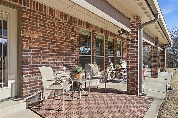 The oversized 3-car garage provides abundant built-in storage, a work area, and an in-ground tornado shelter designed to accommodate approximately 8-10 people. Additional features include: fiber optic internet, a whole-home water filtration system, an RV hookup, double-hung windows, and concrete sidewalks around the exterior. Enjoy evenings on the large, covered back porch while catching a glimpse of wildlife, such as deer and wild turkeys, that frequent the property. Updates completed in 2015 include electric garage doors, a hail-resistant roof, and oversized gutters with LeafGuard. Kitchen appliances- including microwave, oven, dishwasher, and refrigerator--are approximately 1-2 years old. No HOA. Set back from the road, this home offers privacy, open space, and the comfort of a welcoming atmosphere.