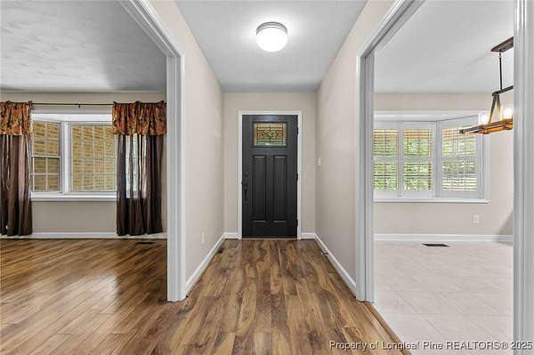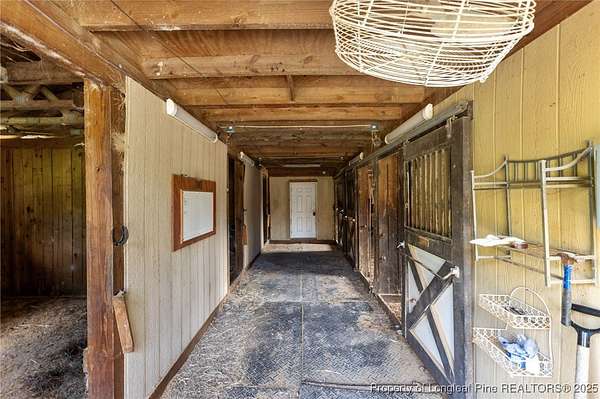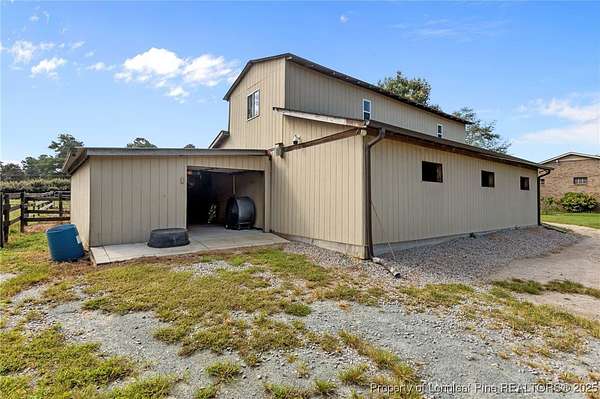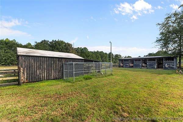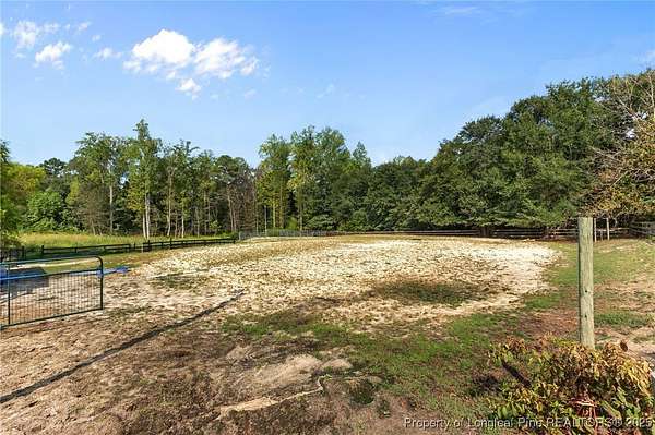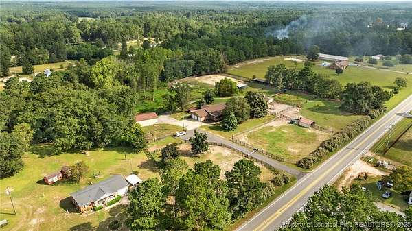 This beautifully kept equestrian property is perfectly situated on over 5 acres in Sanford, offering an ideal location with convenient access to Fort Bragg, Southern Pines, the Triangle area, and Fayetteville. The fully fenced exterior features a gated entrance and a recently paved driveway, thoughtfully designed for easy horse trailer turnaround. Multiple fenced pastures provide ample space for grazing, while a large metal outbuilding offers versatile storage options. Equestrian facilities include a 6-stall barn complete with a tack room, additional garage storage, and an upper-level loft. A professionally graded riding arena, inspired by Aiken's equestrian heritage, enhances the property's appeal for serious riders. The main residence boasts a 3-car garage and a spacious front porch, welcoming you into a well-appointed 4-bedroom, 3-bath home. The front of the house features a large formal living room, dining area, and a kitchen with stainless steel appliances. Just off the kitchen, you'll find a private in-law suite with a full bathroom, bedroom, laundry area, and a former photography darkroom-now functioning perfectly as a butler's pantry with a sink. An additional living room at the rear of the home opens to a serene back patio, ideal for entertaining or relaxing. Two guest bedrooms share a full bath, while the primary suite includes an updated ensuite bath and generous closet space. Storage is abundant throughout the home, meeting the needs of any lifestyle. With recently updated HVAC systems and a newer roof, this turn-key property offers both comfort and peace of mind in a truly exceptional setting.