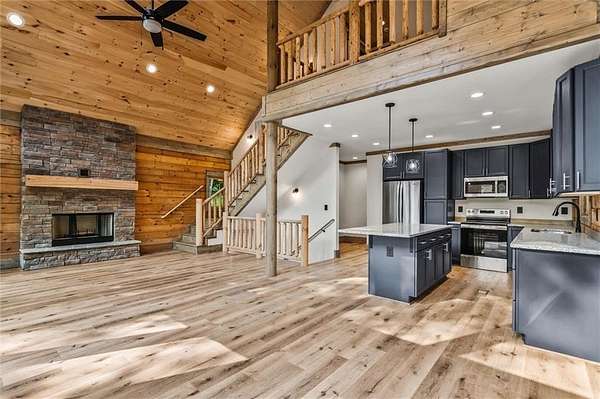 Step inside to soaring vaulted ceilings, rich natural wood tones, and an open floor plan ideal for relaxing weekends or entertaining guests. The chef-inspired kitchen features sleek cabinetry, stone counters, and a spacious island overlooking the great room and cozy fireplace. With three full bedrooms, three and a half baths, a flexible loft, and a finished recreation level, there's room for everyone -- whether it's family, guests, or short-term rental visitors.