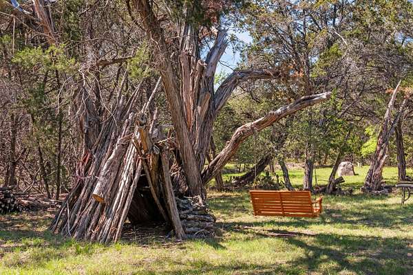 If you're looking for a remote hide-away surrounded by nature, look no further! This 11.3 acre property comes complete with a well, electricity, an outhouse and a very small shed/cabin (10x20) with a shady covered front porch! The land has varying topography which begins fairly level, drops down to a lovely wet-weather creek and then elevates through beautiful rocky outcroppings to a high vista with terrific views! Relax below the canopy of trees in the hammock, push the kids on the tree swing, enjoy the cool evenings around the fire pit and enjoy hiking around this beautiful and diverse property! Because this property is off the beaten track, you can enjoy stargazing without distracting lights and animal watching away from all of the city noises! This hidden gem of a property is just a few minutes from Hamilton Pool and 45 minutes from Austin which adds a layer of convenience without sacrificing the remote, secluded vibe. This dream retreat is perfect for anyone seeking tranquility and immersion in nature! This is the lowest priced acreage of it's size in the area! Grab it before it's gone!