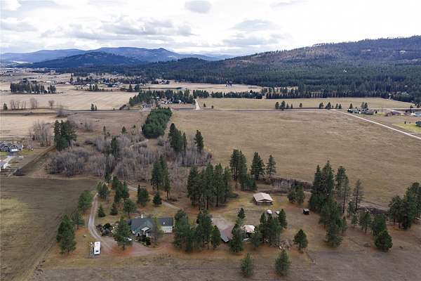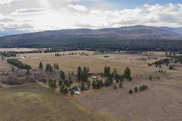 Rare opportunity to own 48 flat, fully usable acres just minutes from Kalispell-only 5 minutes to the bypass. Offering an exceptional blend of convenience, privacy, and wide-open space. This thoughtfully designed farmhouse showcases quality construction and a functional layout suited for a variety of lifestyles. With no covenants and West Valley zoning, the property provides the freedom to create your ideal setup, whether that's a working homestead, hobby farm, or peaceful rural retreat. Inside, large picture windows frame sweeping mountain views and fill the home with natural light, creating a warm and inviting atmosphere year-round. The floor plan includes a versatile space that can easily be converted into a home office, along with a separate guest suite above the garage-perfect for visitors, extended living, or rental potential. A fully finished basement adds even more flexibility with multiple hobby rooms, offering space for crafts, fitness, storage, or creative pursuits. The land is equally impressive, featuring 33 acres of productive hay ground along with valuable water rights for irrigation-ideal for livestock, farming, or maintaining lush, green acreage. A well-maintained heated barn adds functionality and supports a variety of agricultural uses, while the well-designed heated two-bay shop provides ample room for vehicles, equipment, and storage. Enjoy the best of Montana living with breathtaking mountain views in every direction, all while being just minutes from town amenities. This is a rare chance to own a versatile, highly usable property in a prime location with endless potential.