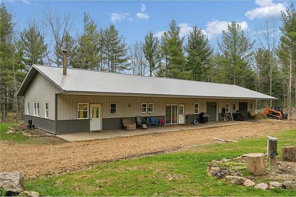 An idyllic setting amongst the trees! Nearly 44 acres of mostly wooded rolling countryside! The building houses a spacious living quarters, generous garage space, and added storage area. Also features a full, building-length covered concrete patio! There is presently a considerable amount of harvestable timber on site! Are you a hunter? There's ample food, water, cover, and space here; white tail deer are numerous and sizable in this area! Conveniently located just 3 miles from Glenwood City! If you've been looking for that place in the country, or a recreational get away with land, you OWE yourselves a showing of this property!