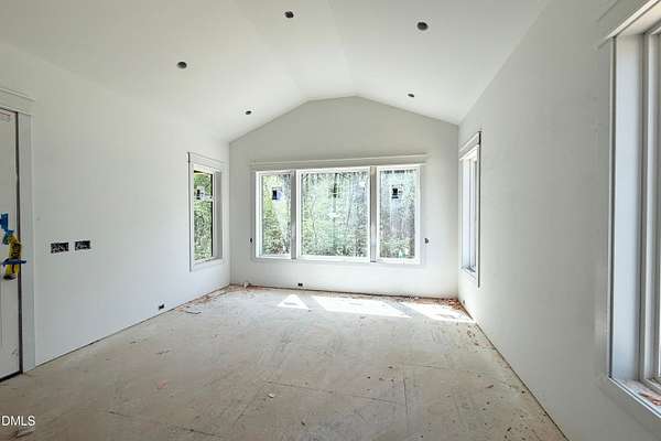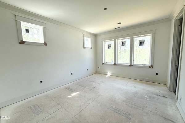 Built by Exeter Building Company, this Transitional European-style home with modern Tudor influences blends timeless design with versatility. Set on a private 1.92-acre lot in the gated community of Grand Highland Estates, it offers a peaceful setting with easy access to RTP and Raleigh-combining serenity with convenience. The main level includes a vaulted owner's retreat with spa-like bath and walk-in closet, plus a guest suite with en suite bath. The gourmet kitchen features designer appliances, a large island, and walk-in pantry, flowing into the vaulted dining area and family room with fireplace and built-ins. Upstairs, spacious bedrooms each include en suite baths and walk-in closets, along with a bonus room and study nook-ideal for work, play, or retreat. Designed for flexibility and future growth, the partially finished basement adds a large rec room and unfinished space with endless potential for expansion, hobbies, or multigenerational living. A covered rear porch with stone fireplace extends the living space outdoors, while a 1-car front and 2-car side-entry garage offer flexible, functional parking. This home blends classic style, space, and practicality in one of the area's most desirable communities.