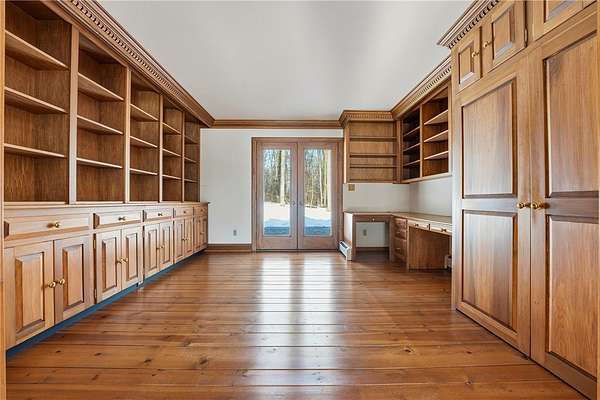 You have arrived at your peaceful country estate, settled on over 20 acres with a 3-acre stocked lake, walking/riding trail, a meandering creek, a 10-stall horse barn, and views that extend for miles. Whether you raise horses, are an avid gardener or wildlife enthusiast, or simply crave peace and privacy, this property delivers. The main floor living room captures your first glance and invites you to linger. A log-burning fireplace extends a cozy ambiance that makes winter evenings something to look forward to. The formal dining room sets the stage for dinner with a view. Large windows frame the front yard, where birds and wildlife wander freely. Need a quiet corner to read or study? The main floor den/office is lined with custom built-ins designed to beautifully house your favorite books and keep electronics tucked neatly away. The stunning Hickory kitchen will delight the host-extraordinaire in you! Quality handmade cabinetry brings clean lines, warm tones, a center island, and smart pull-out storage to this well-designed space. Quartz counters, a glossy tile backsplash and porcelain tile floor offer exciting modern textures and tie it all together. Do you have a large family or lots of friends? Host them all in the grand 23x25 hub of this home. A "great room" in the truest sense, this space is open to the dining room, offers rich wood features, and is centered around a brick-faced, log burning fireplace. You'll never again long for the space to host the ones you love! When its time to rest and renew, follow the wood plank floors upstairs. A newly appointed bath is the perfect compliment to the primary suite. A sleek custom tile shower, enclosed in clear glass creates a sumptuous space you will love. Every season brings its own beauty. It's easy to see why life is better here at the farm!