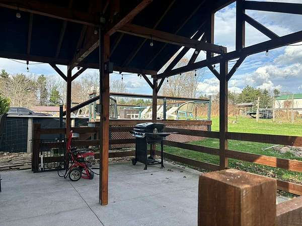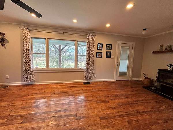 Experience peaceful rural living with this one of a kind property! With 2.22 acres of enclosed land, this updated single-level home features wood and tile flooring, a spacious layout, generous storage, and ample room for your vehicles and guests. Take in scenic views in every direction, with the primary bedroom opening to covered outdoor space. The backyard includes a deck with a heated pool and an inviting lounge area. Additional highlights include a garden space, chicken coop, storage building, berry vines, fruit trees, and a tree platform so you can indulge in nature. A private electric gated entrance completes this beautiful home. Schedule your showing! Memories are waiting for you!