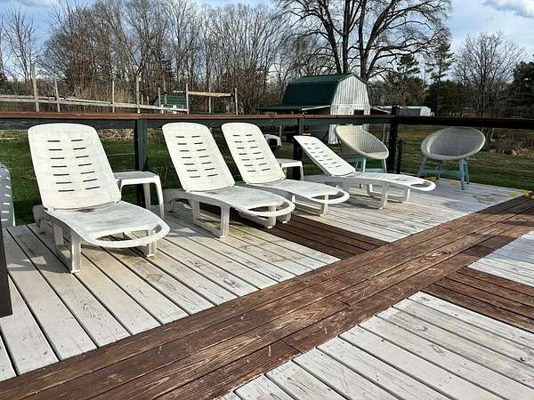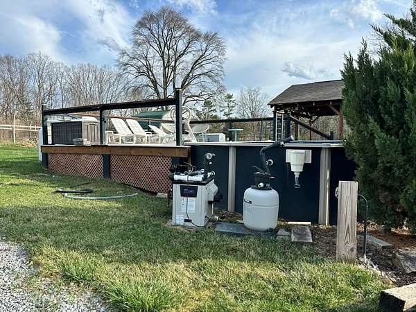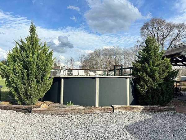 - Deck/Patio, Fenced Yard, Gravel Drive, Gutters, Private Yard, Storage Building, Swimming Pool