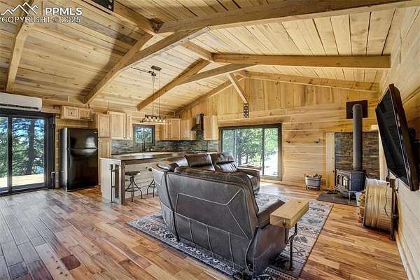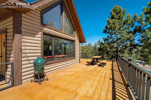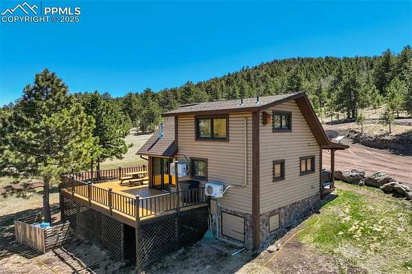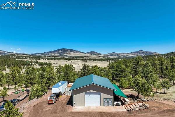 Welcome to Guffey, where our mountain properties are as unique and lovely as our folks! This private 10.8-acre escape showcases gently rolling terrain with mature pine stands, grassy meadow, RV parking, and a turn-around driveway for easy access. The property includes a 730 ft2 1.5-story primary residence and a fully furnished 882 ft2 guest quarters, each equipped with dual Pioneer Mini Split systems for year-round comfort. The main home features an open loft bedroom, soaring wood-framed windows, Austrian oak floors, a propane stove, and over 790 ft2 of new decking for relaxing or entertaining. The kitchen offers a high-performance stainless gas range, leathered granite counters, granite sink with sensor faucet, and a pantry/laundry room with cabinetry. The guest quarters boast vaulted ceilings, exposed beams, custom acacia floors, a wood stove, and a wraparound deck with unobstructed views. Its kitchen includes granite counters, maple cabinets, a ZLINE gas range with electric oven, and an island with storage and bar seating. The private bedroom is paired with a stackable laundry area, while the ensuite bathroom offers a soaking tub and sleek finishes. Elsewhere on the property is an insulated, productive chicken coop with enclosed yard and an oversized 30 x 40 heated garage featuring concrete aprons and covered side entrances. Ideal for work or leisure, the garage includes 220V power for tools or EV charging, a mezzanine with built-in workbenches, and an office with cabinets and separate exterior access. Tucked just off paved CR-102 near Hwy 9 and an hour west of Colorado Springs, this peaceful location offers year-round access to Divide, Woodland Park, Florissant, and Cripple Creek for dining, shopping, and entertainment. With Mueller State Park, Pike National Forest, the South Platte River, and Eleven Mile Reservoir nearby, you'll find world-class hunting, hiking, rafting, fishing, and more at your fingertips! Additional photos, 3D tours, and documents available.