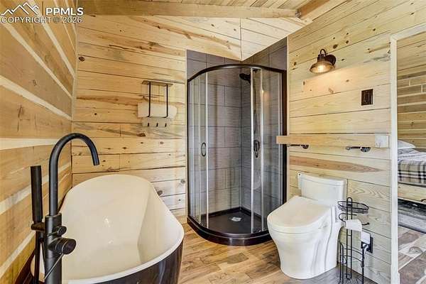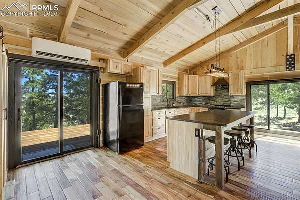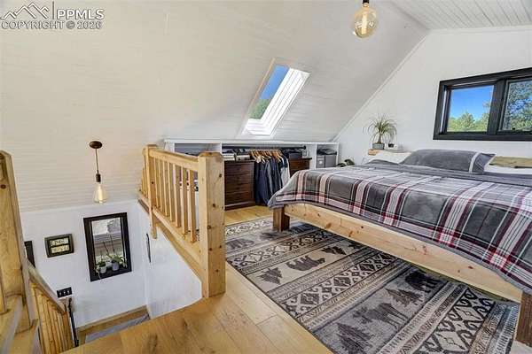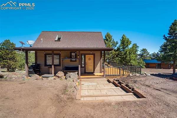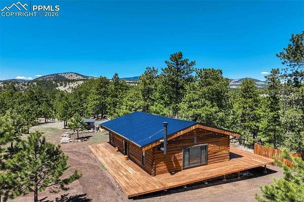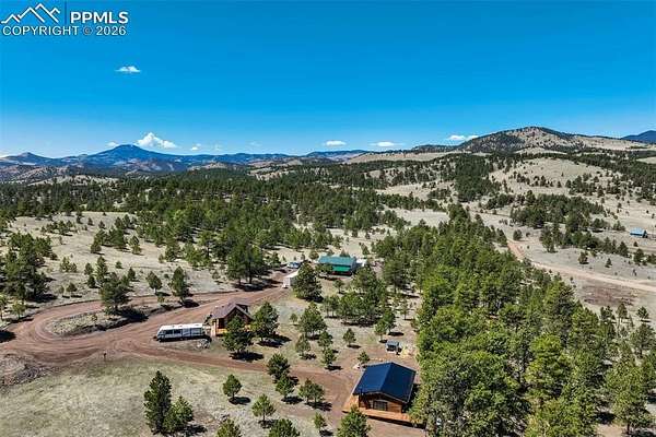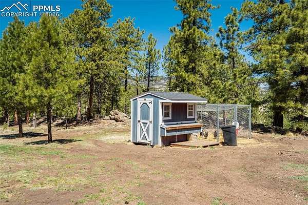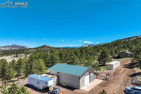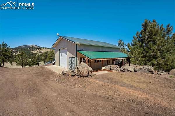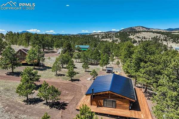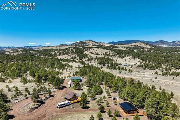 Nearly 11 acres of usable mountain land, a detached guest retreat with full amenities, a 30 x 40 heated professional shop with office, and an insulated chicken coop with enclosed yard make this Guffey property stand out from the start! Gently rolling terrain moves through mature pine trees and grassy meadow, with RV parking and a turn-around driveway designed for easy year-round access offering privacy, flexibility, and room to live, work, and create! The 730 sq ft 1.5-story primary residence and fully finished detached 882 sq ft guest retreat are both equipped with dual Pioneer Mini Split heating and cooling systems for reliable four-season comfort. The main home features an open loft bedroom, wood-framed windows that fill the space with natural light, Austrian oak floors, and a propane wood stove that anchors the living area with warmth and character, along with over 790 sq ft of new decking ideal for relaxing and admiring your Rocky Mountain fortress. The kitchen includes a stainless gas range, leathered granite counters, granite sink with sensor faucet, wood bar seating, and a combined pantry and laundry area with added cabinetry and workspace. The guest retreat offers vaulted ceilings, exposed beams, custom acacia floors, a wood stove, and a wraparound deck with long, open views. Inside, the full kitchen features granite counters, maple cabinets, a ZLINE gas range with electric oven and vent hood, island seating, a private bedroom, stackable laundry, and an ensuite bath with soaking tub and modern finishes. The heated shop is built for serious hands-on use with tall overhead clearance, wide concrete work apron, 220V power for tools or EV charging, a mezzanine with built-in workbenches, enclosed office with cabinetry, and a covered entrance that doubles as additional workspace. Tucked just off paved CR-102 near CO-9, you are close to Canon and Woodland Park, in addition to nearby public lands for hiking, fishing, rafting, hunting, and year-round recreation.