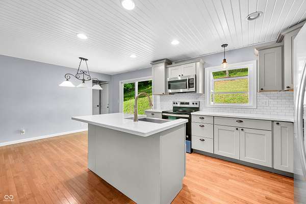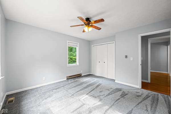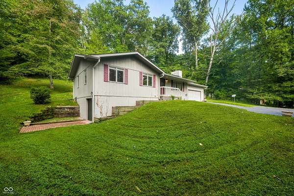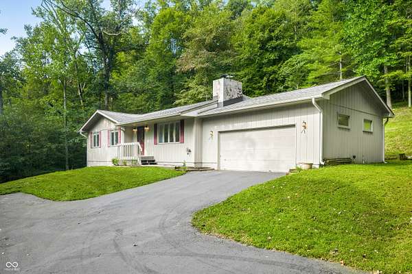 Your Brown County Home Awaits You! Seller Concessions offered for Rate Buy Down, Closing Cost ETC!! With over 2500 sq ft to spread out, this 3 bed, 2.5 bath home is waiting for the next family to create a lifetime of memories. Living room features a white brick fireplace with wood burning insert and solid oak hardwood floors that stretch into a stunning fully updated kitchen with brand new appliances and a greenhouse window. All three bedrooms are located on the main level with a primary featuring an ensuite with a tiled shower and heated floor. Basement boasts a finished space with brand new carpet, wet bar, walk-out patio and plenty of space for entertaining, game room, home gym etc. Half bath, large laundry and unfinished storage room gives you plenty of space to keep things organized. Brand new HVAC & water heater. Situated on 2.5 Acres of Brown County wooded oasis.