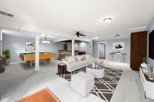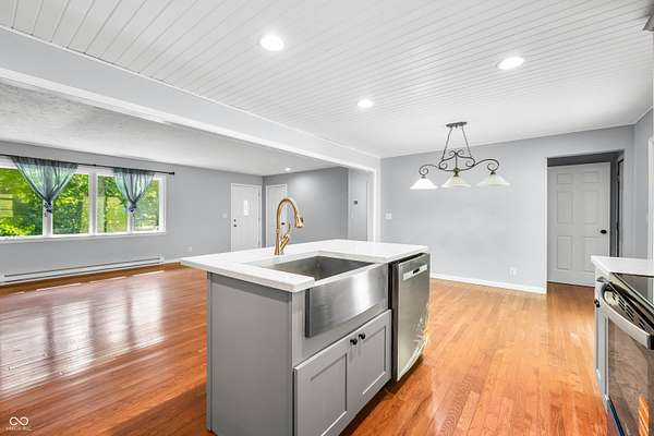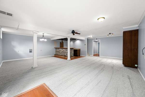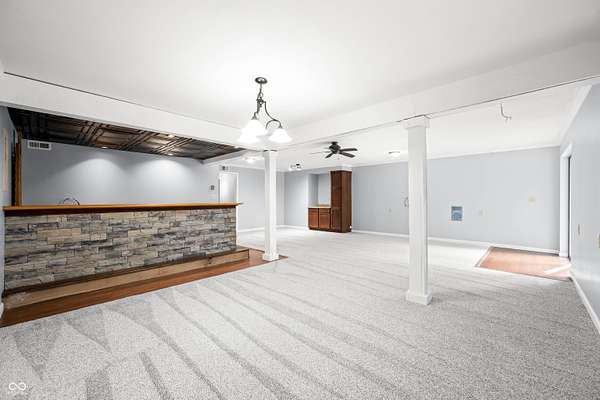 - Hardwood Floors, Kitchen Island, Paddle Fan, Smart Thermostat, Wet Bar, Wood Work Painted