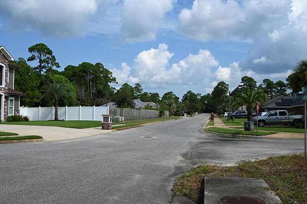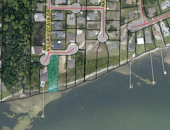 From Hwy 98, go south on Villa Vizcaya Drive, which is just east of the Walmart Neighborhood Market in Navarre and a little west of the light at Coral St. The lot is on the water at the end of the cul-de-sac in between the house at 1725 Villa Vizcaya and a house that is under construction.