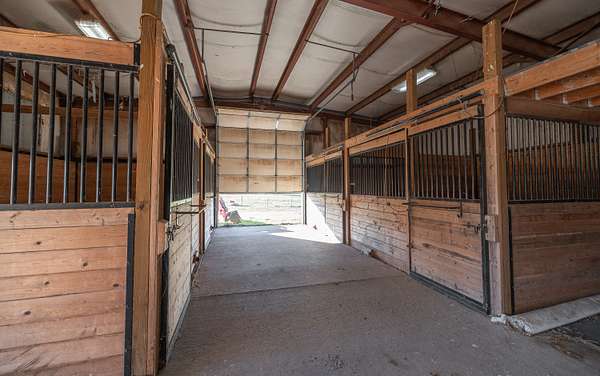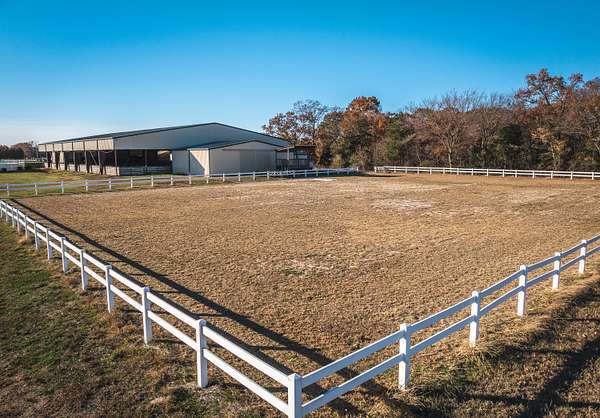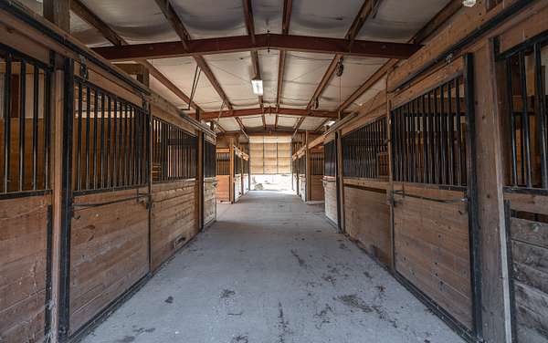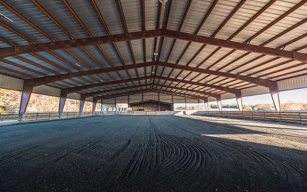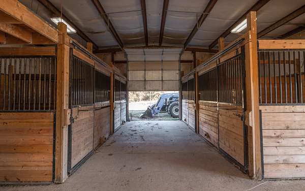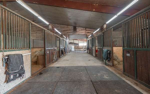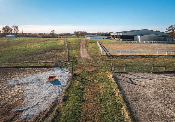 Whispering Creek Farm A Premier 70-Acre Equestrian Estate. Welcome to Whispering Creek Farm, a state-of-the-art, 70-acre horse facility thoughtfully designed for professional equestrian training, boarding, and competition. This remarkable property combines first-class amenities with exceptional functionality making it ideal for dressage, boarding, or any equine discipline. At the heart of the property is a 165' x 115' covered riding arena featuring premium rubber and sand footing, energy-efficient LED lighting, an integrated sound system, and an impressive 50 feet of mirrors to enhance training precision. The arena is attached to a 10-stall stable, each 14' x 14' concrete stall boasting beautiful exposed aggregate fronts, built-in hay and feed bunks, a wash bay with hot and cold water, a feed room, and a tack room. Additional facilities include a 40' x 60' hay barn, an 8-stall horse barn, and a 24' x 32' barn with 4 stalls, providing ample space for horses and equipment. A 14' x 28' office with a kitchen and full bath offers comfort and convenience for staff or clients. Outdoor amenities feature two large riding arenas 150 x 250 and 100x 250 perfect for training and events. The farm includes nine paddocks with automatic waterers five of which have run-in sheds. A grain elevator, shavings shed, and two wells further enhance the property's self-sufficiency. For recreation and relaxation, enjoy approximately two miles of private riding trails winding through the scenic landscape. Whispering Creek Farm is expertly set up for a professional dressage operation but is perfectly adaptable for any equestrian discipline. Every detail reflects quality, functionality, and a passion for horses.