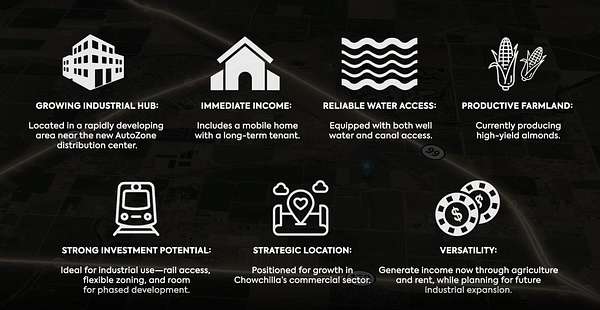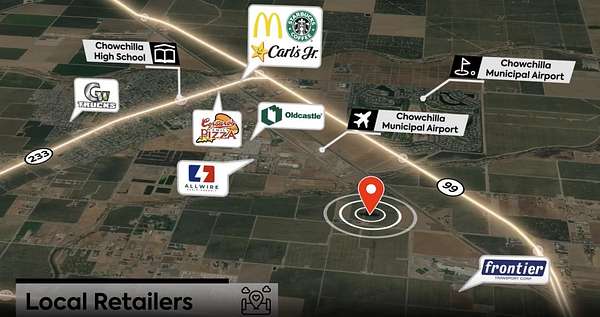 Incredible opportunity to own A+-39.89 acres of annexed land within the City of Chowchilla, zoned Urban Reserve for Heavy Industrial (I-H)! This listing includes two contiguous parcels: APN 002-350-014 (A+-13.89 acres) and APN 002-350-008 (A+-26 acres) a total of 39.89+- acres. Currently planted and productive Nonpareil and Monterey almond orchards. Property features include flat topography, canal water access, a shared-use domestic well (pending agreement), and close proximity to Hwy 99 and major trucking/logistics hubs. A modular home is included in as-is condition (not on permanent foundation). Ideal for continued farming or future industrial development. Buyer to verify all zoning, water, and use opportunities with the City of Chowchilla and County of Madera.