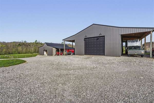 Turnkey mini farm on 13.91 acres offering a rare opportunity to step into a fully established setup without the time, cost, and uncertainty of building. Built just three years ago, this property combines newer construction with a thoughtfully designed land and improvement package that is difficult to find. The land is set up to work from day one, featuring fenced and cross-fenced pasture, creek frontage, hay ground, and a well-planned dry lot feeding system that supports efficient day-to-day management. The four-stall barn with tack room and hay storage provides exactly what is needed for a manageable horse setup without the burden of maintaining a larger facility. The home offers over 1,800 square feet of finished living space with a flexible layout including three bedrooms and three bathrooms. The main level is anchored by an open-concept kitchen, living, and dining area with cathedral ceilings, a wood-burning fireplace, granite countertops, tile backsplash, soft-close cabinetry, and gas cooking. A finished walkout basement adds additional living space, 3rd bedroom and bathroom, creating options for guests or extended living. Where this property truly separates itself is the 30x48 heated and cooled shop. Equipped with its own electric meter, kitchenette, and full bathroom, it provides a level of flexibility rarely found in properties at this scale. On each side, 14-foot lean-to areas offer covered space for trailers, equipment, or RV parking, with multiple RV hookup's and it's own dump station for added convenience. Additional improvements include a tankless gas water heater, high-efficiency gas furnace. The property is serviced by Cumberland County water and also includes an unused well. A transferable 2-10 home warranty with approximately seven years remaining adds an extra layer of confidence for the next owner. Positioned between Mammoth Cave National Park, Big South Fork, and Daniel Boone National Forest for the best trail riding in the south.