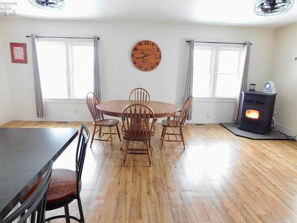Est $2,223/moRoom to roam on this 3-4 Bedroom & 2 Full bath home sitting up high on 3 acres with country views from all directions! 32 x 60 Pole barn/shop with electric and concreted floors for multiple uses, 16x22 historical cabin thats currently used as a she/shed. Spacious over sized fully equipped eat in kitchen with center island and tons of cabinetry with adjoining dining area and warm pellet stove, newer laundry room with abundant shelving, dedicated storage/coat room, comfy living room, first floor Master with walk in closet, 3 bedrooms up with full bath and nursery. Attached 2 car garage under home with ample parking on the premises.