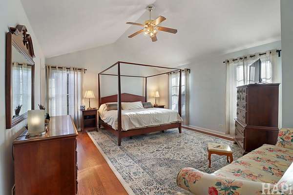 The best of both worlds! Bannockburn services and low taxes, Walden School! Set on over 2 well- landscaped acres, this 5000SF home offers first- floor primary bedroom suite, open floor plan, and cathedral-ceiling great room opening to large white kitchen with new quartz counters. At other end of house for privacy is a first-floor guest room/in-law suite with full bath. Off this main-floor in-law suite is a stairway to a huge upper level family room with bar and private balcony, plus a large bedroom with full bath, perfect for caretaker, teens, guests. Basement has full bath, workroom, bedroom, play area. Furnaces 2014, CAC 2018, cedar roof 2016/2017, hot water heater 2019. 3 car garage with EV charger. Seller prefers June or later close. POF or similar to show