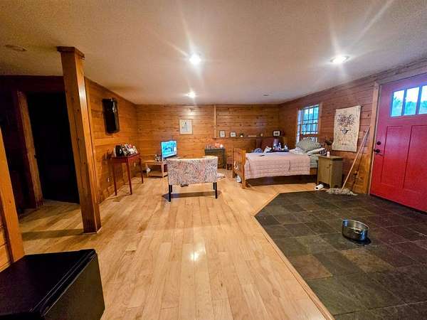 Quality Log home has all the features you are hoping to find! This 3 bedroom home has living space on 3 floors with 3 bedrooms, including a stunning primary bedroom suite with exposed timber framing, custom Vermont Slate bathroom with shower and a large walk-in closet. The main floor also features an open concept kitchen, dining area and living room. The kitchen has ample cabinets for storage, granite countertops and a large center island for cooking and entertaining your guests. The remaining dining / living area has tall timber framed cathedral ceilings and tall glass doors and windows looking across the immense deck with views to the west. Also on the first level is a half bath. Up above on the open wooden stairway, the large loft area is a great place to enjoy a movie or a book and this space would also serve well as additional sleeping space. Downstairs in the walk-out finished basement, a large family room, 2 large bedrooms and a full bath are well integrated with the main level and offer bright spacious rooms. The house is sited well back from the road looking down over the large level lawn area with a big firepit and valley views to the west. Don't miss your chance to own this charming property as your primary or vacation home.