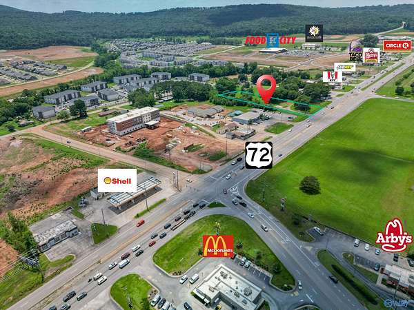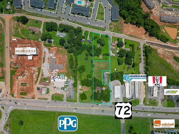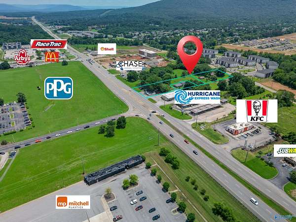 Est $7,486/moDevelopment opportunity in one of Huntsville's fastest growing areas! 2.59+/- acres with 169 feet of road frontage & high visibility (daily traffic count ~33,000). 7 minutes from downtown Huntsville. Zoned C4. Property extends to Old Gurley Road for easy access from two sides. This income producing property consists of 3 parcels which include 3 residences & one retail business. An additional adjacent 3.09 +/- acres is also available for purchase. Coming soon nearby: Starbucks, Chik-Fil-A, Food City & Holiday Inn Express.