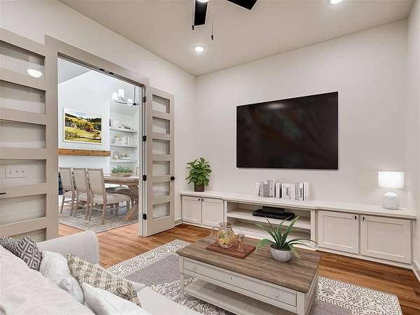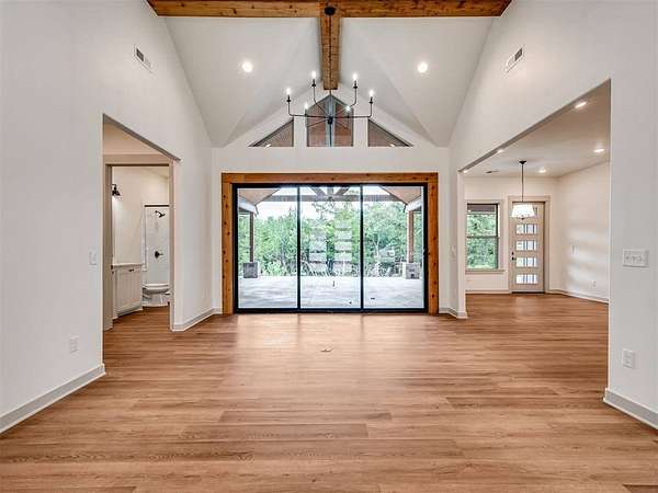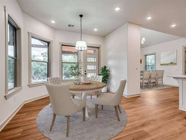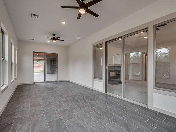 Situated on a private road and surrounded by 5 secluded acres, this expansive 5,087 sq ft home offers exceptional space, comfort, and flexibility. A 24' x 40' concrete pad is already in place, ready for your future shop or outbuilding. The home includes 4 spacious bedrooms and a large bonus room with its own full bathroom and closet--ideal as a 5th bedroom, guest suite, or play room.. The layout features a unique split floor plan, creating two distinct living wings for added privacy and functionality. On the west side, the primary suite offers a private sitting area with a double-sided fireplace, two oversized walk-in closets, a laundry space, and a sunroom that opens to a covered back patio. Nearby, you'll find a full bath with exterior access--perfect for future outdoor entertaining or pool plans--as well as a study, hobby room, and a living area with additional patio access. At the heart of the home, you'll enjoy a formal dining room, media room, second living space, and a well-appointed kitchen with a walk-in pantry. The east wing includes two bedrooms connected by a Jack and Jill bathroom, a butler's pantry, a dedicated laundry room, a storm-safe room, and a second primary suite with its own covered patio and laundry space. A stairway leads from the laundry room to the bonus room above the garage. Additional features include a 3-car attached garage, propane tank, two tankless water heaters, gas access on the back patio for grilling or a firepit, and multiple access points to the home's outdoor living spaces. This thoughtfully designed home offers a rare combination of space, privacy, and amenities--schedule your showing to fully appreciate everything it has to offer.