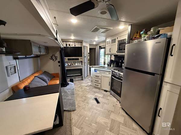 This is a Coming Soon Listing. STUNNING SUNSET VIEWS OVER THE WATER RIGHT FROM YOUR PORCH! Not your normal RV lot and lots in this subdivision don't come up often! Move-in ready with direct views of the Bon Secour River from the spacious 30' x 14' covered deck. This property features a 2021 Puma RV (approx. 450 sq. ft. living area) offering 2 bedrooms and 1.5 baths, positioned on one of the most desirable lots--Lot 12 on Pirate Circle. Added space to allow for 8 guests. The 108' x 38' lot showcases mature palms, live oaks, and fruit trees, plus 50-amp service, city utilities, and garbage service. Ideal for weekend escapes or investment use, with both short-term and long-term rentals permitted. Located half a mile from the new $4M public boat launch at County Road 6 and just 6 miles from Gulf Shores Public Beach. Vacant and easy to show today. Buyer to verify all information during due diligence.