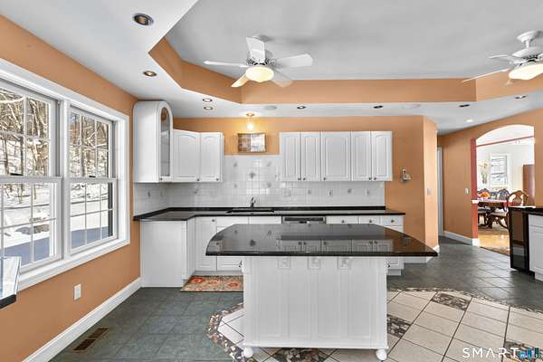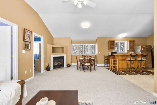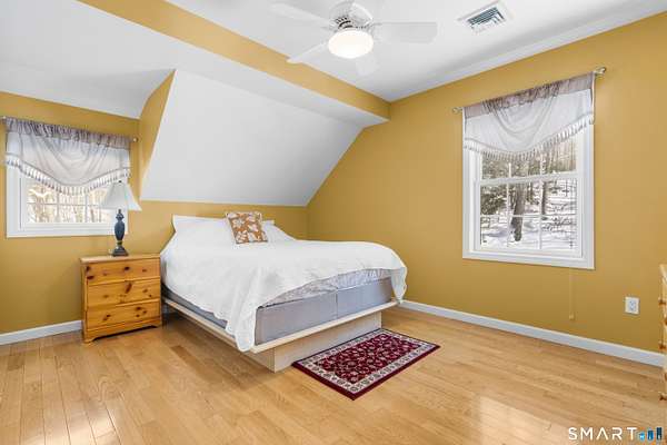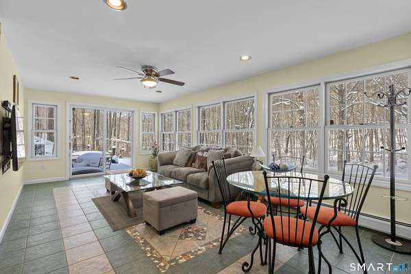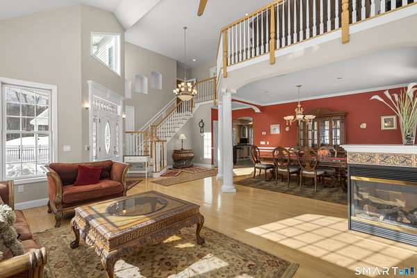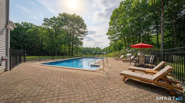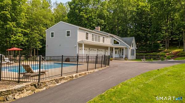 Exceptional custom contemporary set on a rare 9.4 acre private, interior lot, just minutes to Litchfield center! Offering approx. 3,400 sq ft, this home showcases custom woodwork and architectural detailing throughout. Upon entry, you're welcomed by a formal living room & dining room, defined by hardwood floors, soaring cathedral ceilings, a gas fireplace, & elegant custom pillars that create a striking first impression and timeless sense of scale. The home then flows seamlessly into the eat in kitchen, featuring a center island, granite countertops, stainless steel appliances, &a tray ceiling-ideal for both every day living & entertaining. The spacious sun room off of the kitchen offers sliders leading to an 18x34 heated in ground pool with a brand new liner & jacuzzi, all surrounded by peaceful, wooded privacy. A main level primary suite with full bath and convenient main level laundry add ease and functionality. The second floor features a loft overlooking the living room & dining room, three bedrooms, and an additional living room with gas fireplace, and wet bar. An additional room on the second level could easily function as a home office or use your imagination! 3.5 baths have all been remodeled. Additional features include a 3 car garage(3rd bay, negative pressure, dust free) central air (new first floor unit), 4 zone heat, central vac, abundant storage with tons of closets and pull down attic, central speaker system with subwoofer, & a 2500-watt generator.