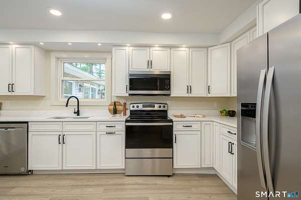 *Seller has received Multiple Offers and has asked for Highest and Best by 3:00PM Sunday* Fully renovated and designed for easy one-level living, this well-built ranch at 173 Bennet Pond Rd. offers over 1,600 square feet of move-in ready space in quiet Canterbury CT. Extensive updates provide true peace of mind, including a brand new kitchen with quartz countertops and stainless steel appliances, updated bathrooms, new plumbing, updated electrical, new heating/cooling and a new septic system. The layout is both functional and efficient, featuring an open kitchen and dining area, and a spacious living room with vaulted ceiling, abundant natural light, and a slider leading to a private deck. A convenient mudroom with attached laundry enhances everyday ease. The home offers three bedrooms and two full bathrooms, including a primary suite with en suite bath. An oversized attached two-car garage adds excellent storage and accessibility, while a bonus space off the garage provides flexibility for a workshop, home gym, or additional storage. Set on over 2.5 acres with a private pond, the property offers a peaceful setting to complement its practical design. A turnkey opportunity for buyers seeking modern updates, low-maintenance living, and the convenience of a single-level home.