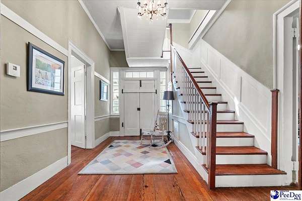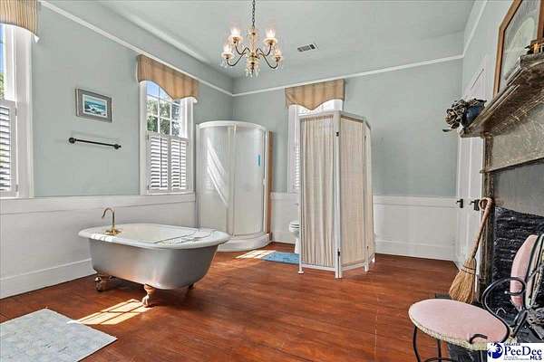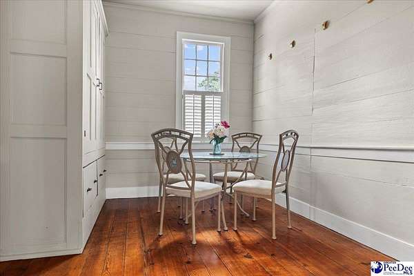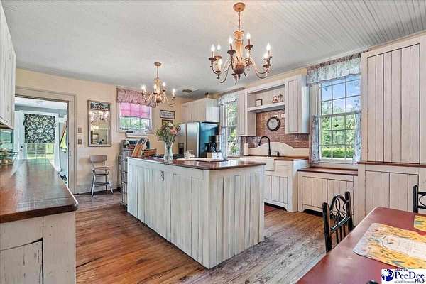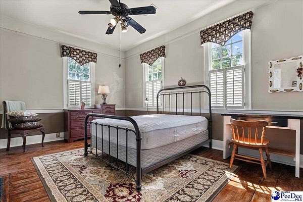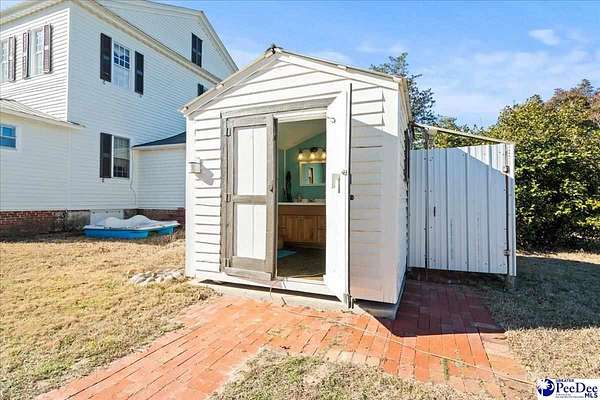 Discover "Cedar Lawn" in historic Society Hill, SC. Built ca. 1803 as the Enoch Hanford House and situated on approximately five spacious acres, the residence offers 5 bedrooms and 3 bathrooms, featuring a convenient downstairs master suite. The main level also offers an additional bedroom with en suite. The well-equipped farmhouse kitchen provides ample cabinetry and countertop space. With nine gas fireplaces throughout, the home preserves an abundance of its original historic character, including soaring 11-foot ceilings, original trim, mantels, built-ins, doors, hardware, and heart pine flooring. A short stroll from the back porch leads to the original carriage house, a drying barn historically used for processing crops such as hemp and indigo, and a barn with a chicken coop and covered parking. The in ground pool and brick patio are complemented with a bathroom and outdoor shower adjacent to the pool. This property boast a proven track record as a bed and breakfast and offers great potential as a wedding venue. Don't miss this opportunity to own a carefully maintained piece of South Carolina history!
