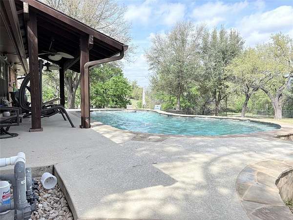 Est $4,667/moDiscover this stunning 3-bedroom, 2-bath home featuring a spacious open floor plan and an inviting pool. Located along a beautiful Bosque riverfront, the property offers direct access via concrete steps—ideal for fishing and kayaking enthusiasts. Surrounded by mature pecan, pear, and pomegranate trees, along with native mustang grapes, it creates a vibrant, natural setting that attracts deer and local wildlife. Nights here are truly special, with breathtaking starry skies.