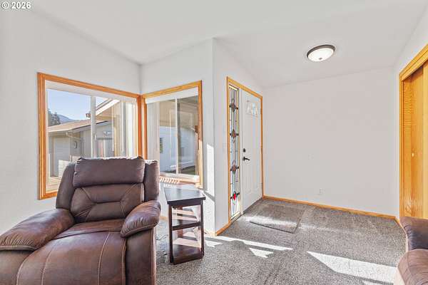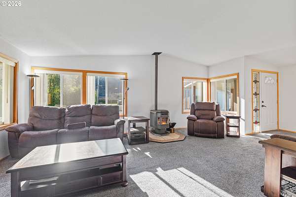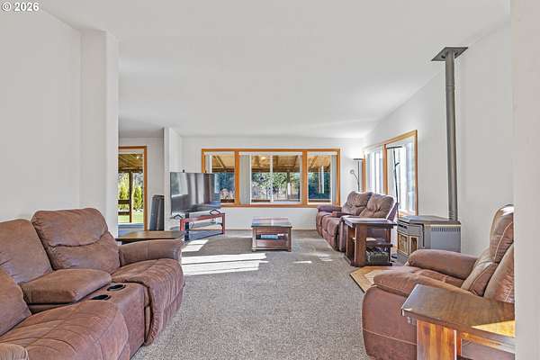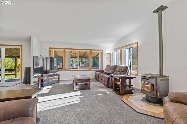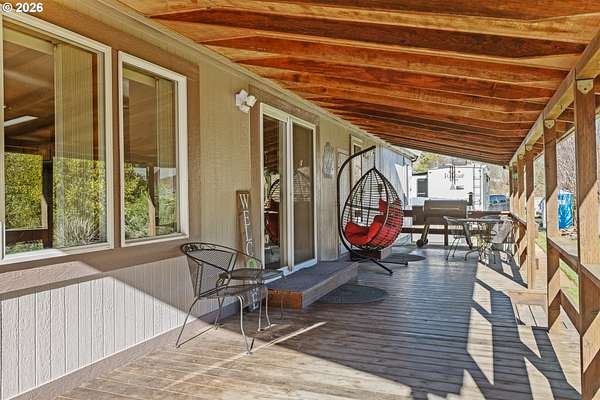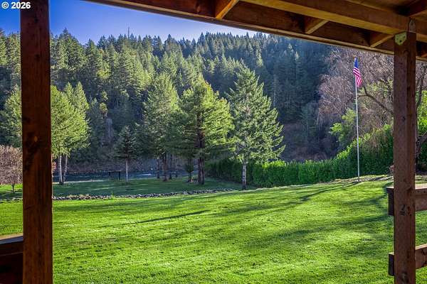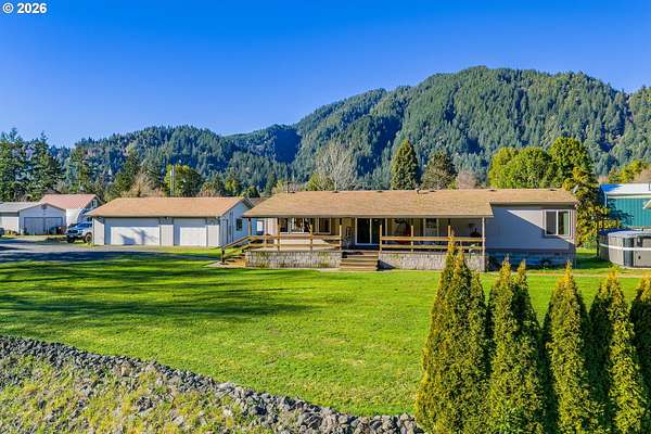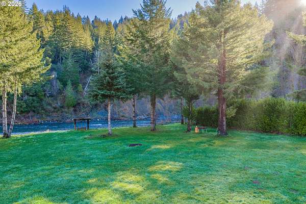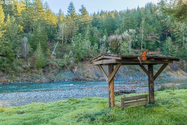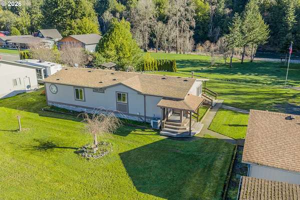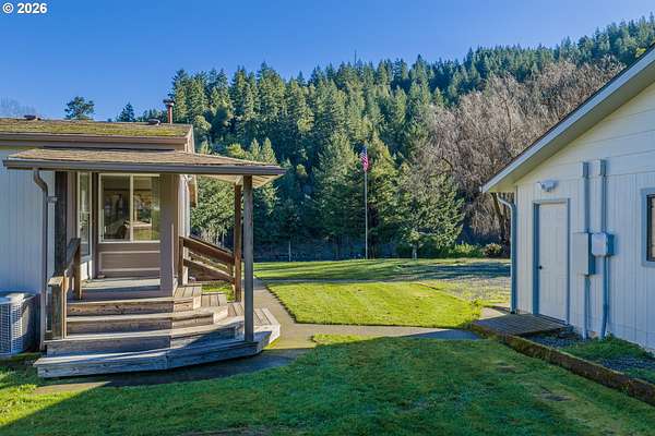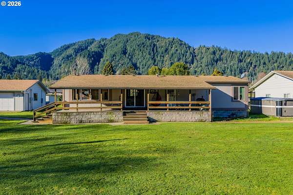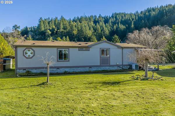 In my opinion this is one of the most beautiful properties you will find! This immaculate, well-maintained one-level Marlette manufactured home is set on 1.84 landscaped acres with South Fork Coquille River frontage and city services. Built in 1992, the home offers 1,512 sq.ft, 2 bedrooms, and 2 bathrooms in a bright, open floor plan.The gourmet kitchen features granite countertops, built-in appliances, a breakfast bar, and ample cabinetry. The dining room opens to the deck through a sliding glass door-perfect for indoor/outdoor living. The spacious living room is filled with natural light and includes a pellet stove, while a heat pump provides efficient heating and cooling year-round. The primary bedroom is generously sized with a walk-in closet. The primary bath offers a garden tub, separate shower, and quartz countertops. The guest bathroom has also been updated with quartz counters. Enjoy the outdoors from the covered porch/deck, surrounded by beautifully landscaped grounds. A detached triple-car garage provides excellent storage and workspace. Including, 0.51 acres behind the home that is a separate tax lot, previously home to a residence, offering potential for a second home or shop (buyer to verify). A rare combination of beauty, privacy, and opportunity-this property is truly worth a look!