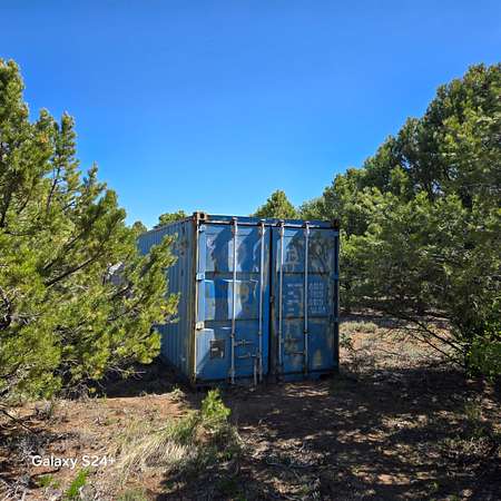 A large, steel container provides for storage needs.