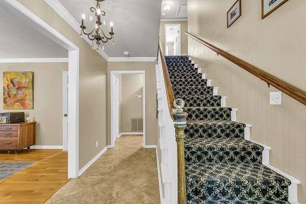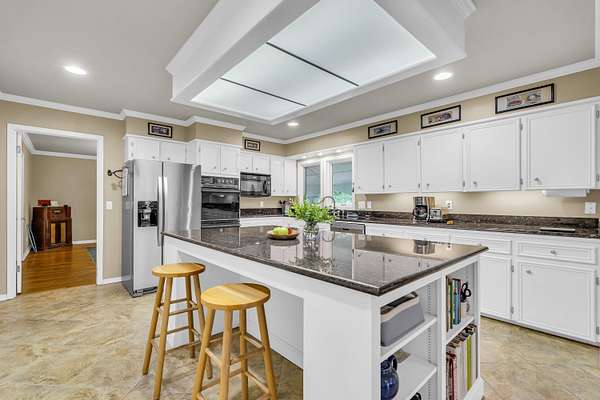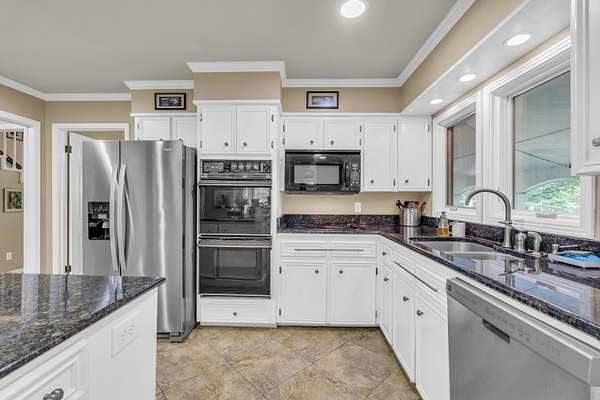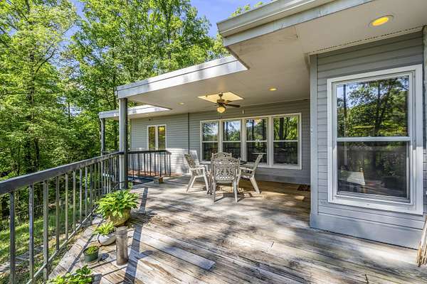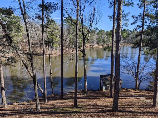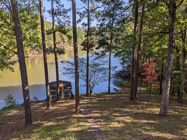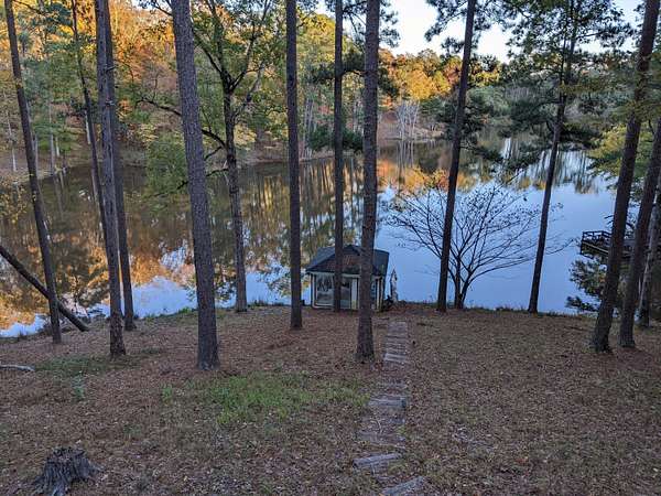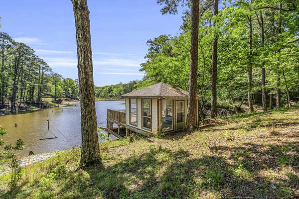 Welcome to Your Cottage Style Dream Home, nestled in a peaceful, tree covered setting with stunning views of a large lake. This gorgeous two story home offers the perfect blend of luxury, comfort & natural beauty - truly a private oasis. Ideal for entertaining formally or informally. A huge kitchen with granite island & bar seating, smooth cooktop, double oven & a large pantry - a culinary dream. Rich hardwood floors paired with classic tile throughtout the home. Large primary suite with luxurious en-suite bath on main floor plus a huge walk-in closet. There is a half bath right off foyer on main floor. Three bedrooms & 2 baths upstairs with one connecting bath to bedroom. Beautiful landscaped yard surrounds house for a setting that feels like a secluded resort. Fish house or boat house with pier for extra enjoyment. Currently the lake is low because repairs have just been made. See other pictures of lake. Enter the long asphalt driveway to the front. Whether you are relaxing indoors or entertaining lakeside, this home offers tranquility, elegance and lengthy vacation vibes. Come see it for yourself - This is more than a house, it is a lifestyle!!