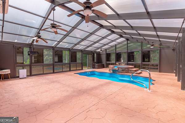 Assumable Mortgage with 3.4% Interest Rate available to all buyers! Beautiful 4BR/3BA Home on Cul-de-sac lot w/ Saltwater Pool and tons of upgrades! Quiet neighborhood (13 homes in Rock House Estates) Only 2 Miles to Downtown Senoia - New HVAC Installed 2022 - Generac Whole Home generator system - Puronics water purification system - 18x10' Saltwater Pool & Hot tub w/ All-seasons pool enclosure - 16x24 shed - This home has been extremely well-maintained front to back - Large vaulted living room w/ wood burning fireplace and arched entries that lead to the kitchen space - Kitchen w/ tons of cabinets, granite countertops & SS appliances - Large dining area w/ access to back porch - Master on Main w/ Tray Ceilings - Large Master bathroom w/ double vanity, soaking tub, separate shower & large walk in closet - BR2 & BR3 w/ Full bathroom off hallway - Upstairs you'll find BR4 w/ Full Bathroom & extra storage space - This is an excellent opportunity to own a beautiful home close to Senoia & get a 3.4% Interest Rate! Contact agent for more details!