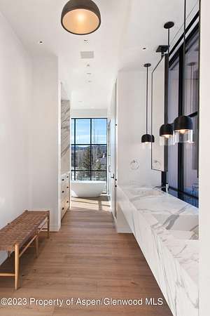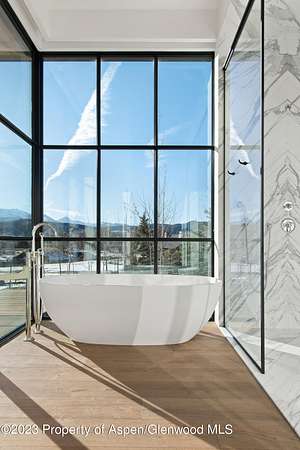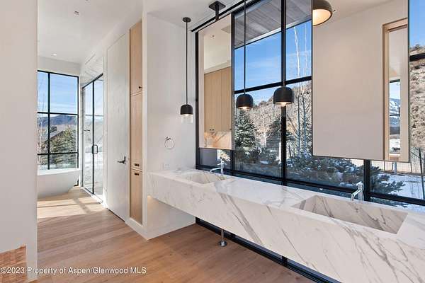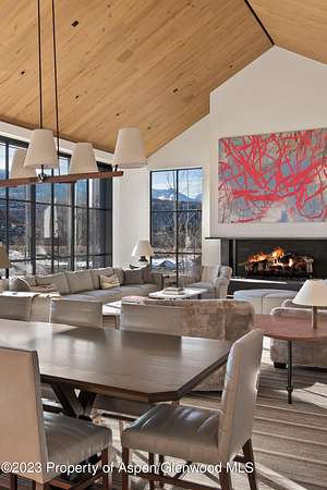 Discover the pinnacle of luxury living at 173 Slalom Path in Aspen, Colorado, now available for an unforgettable seasonal rental. This exceptional 8,250 SqFt residence showcases unparalleled panoramic views of Buttermilk and Aspen Mountain. It features six bedrooms, eight bathrooms, soaring ceilings, bespoke furnishings, and a state-of-the-art gourmet kitchen opening to a cozy area with a grand fireplace and breakfast nook, all set against a backdrop of extraordinary views. The property includes expansive living areas with majestic fireplaces, a luxurious primary suite, complete with a king-size bed, marble bathroom, and private amenities, including an outdoor jacuzzi and cold plunge. For family fun, there's also a basketball area adjacent to the fitness center and a cozy media area with space for the entire family. The home features a cutting edge fitness center, equipped with a Peloton, universal trainer, free weights, and a steam shower for ultimate post-workout rejuvenation. Outside, indulge in true outdoor living with a pool, Jacuzzi, grill, and pizza oven. Ideal for family vacations or summer retreats, 173 Slalom Path is ready to welcome you this holiday season, setting a new standard for luxury living in Aspen.