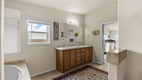 - Ceiling Fans, Garden Tub Roman Tub, Granite Counters, Laminate Counters, Main Level Primary, Solid Surface Counters