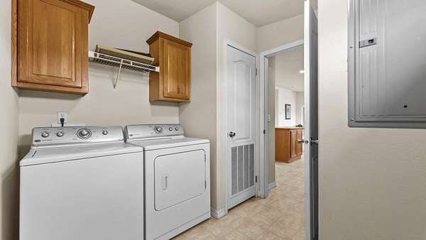 - Disposal, Dryer, Electric Cooktop, Electric Oven, Electric Range, Microwave, Refrigerator, Washer