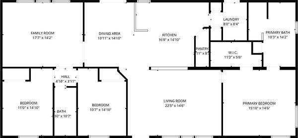 - Bathroom x 2, Bedroom x 3, Dining Room, Family Room, Laundry Room x 2