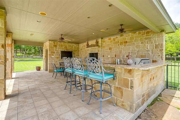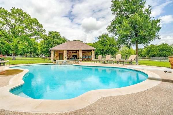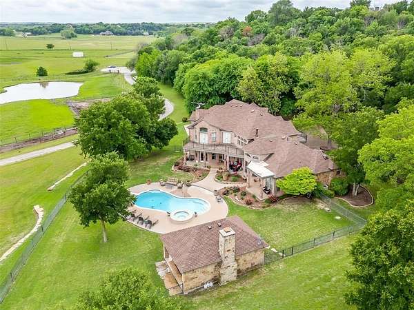 Just over 30 acres and more than 5,000 square feet of luxurious living space located just outside downtown Aledo! Experience the epitome of grandeur at this elegant residence, with soaring ceilings, large picture windows and multiple living spaces, creating a sense of spacious elegance and comfort. The beautiful manicured and cross fenced land spanning over 30 acres is a true haven for anyone hoping to raise or train horses. The property boasts a horse barn with 11 stalls, serene paddocks, and even a stone bridge. There is also a guest home on the property, which is over 2,000 square feet. The back portion of the property boarders the winding Trinity, providing privacy and serenity. Enjoy leisurely afternoons by the pool, surrounded by the breathtaking scenery of this private estate. This is an exceptional opportunity to embrace the country lifestyle, as well as the enjoyment of grandeur and sophistication this wonderful home provides all just minutes from the heart of Aledo, TX.