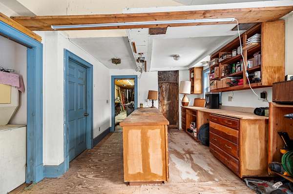 Welcome to this grand oppportunity in gorgeous Groton, Vermont on two scenic acres. This vintage home, perched high above the South Branch Wells River, has undergone renovations in the main house to include new windows, radiant floor heat and a first floor bathroom with custom milled built-ins and vanity. The unfinished room adjoining the kitchen is perfect for a huge living room expansion or living room and first floor bedroom overlooking the river below where you will take in the spring sounds of the river and flowing waterfalls. The connecting room has been used as a workshop while the building has been under construction. This leads to a roomy 2 bedroom, 1 bath addition that awaits your vision, perfect for multi-generational living, as an investment rental, or to further expand the living space. The possibilities are endless and the value add to the property is remarkable. To top it off the sellers are leaving building materials to help get you started! Several miles away Seyon Pond is well known for flyfishing. Nearby Groton State Forest boasts 26,000 acres with 7 state parks offering hiking, camping, boating and swimming, a nature center, Peacham Bog and access to the Montpelier-Wells Rail Trail; an explorers paradise! Come see what this property has to offer!