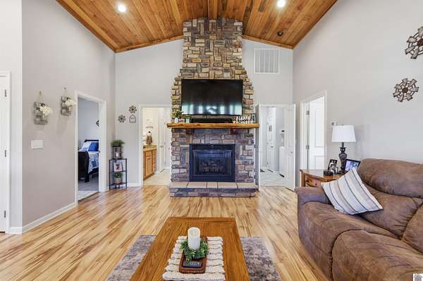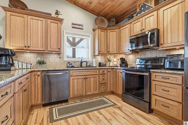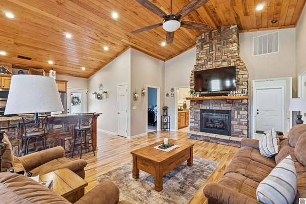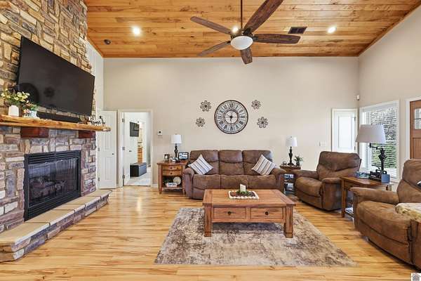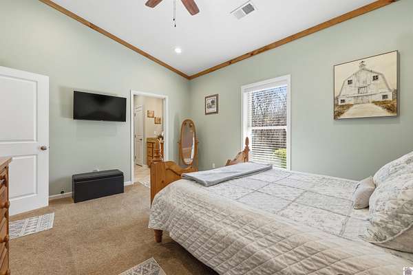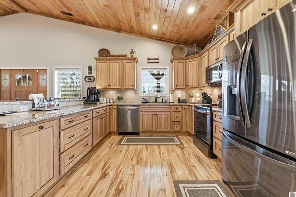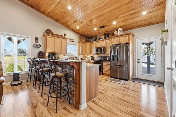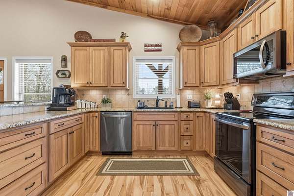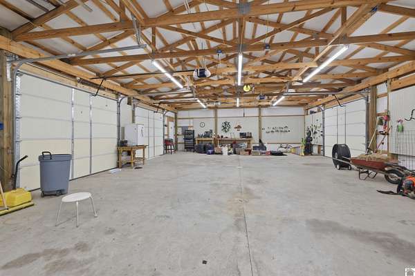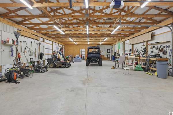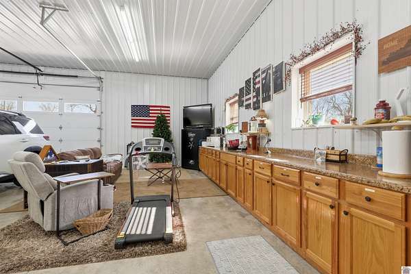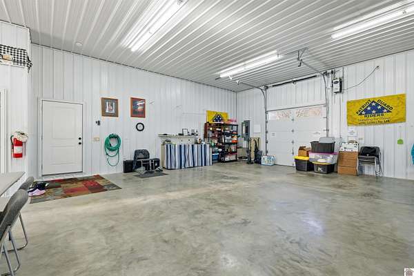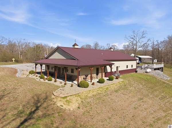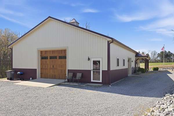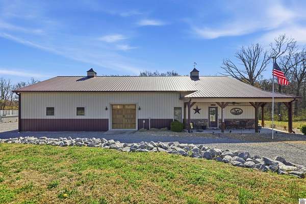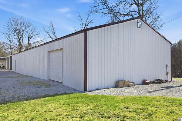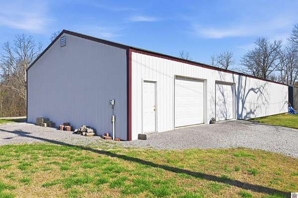 Enjoy peaceful country living just minutes from Kentucky Lake! This well-maintained 9-year-old barndominium sits on 2.31 acres and offers the perfect blend of comfort, space, and functionality. Inside, you will find 2 bedrooms and 2 bathrooms, featuring vaulted ceilings, granite countertops, soft-close cabinetry, and a spacious walk-in closet. The attached garage is a standout feature with capacity for up to 5 vehicles and is fully heated and cooled—ideal for hobbies, storage, or a home workshop. In addition, the property includes a massive 30’ x 90’ detached workshop, 50-amp service, and a separate septic hookup for an RV, making it perfect for guests or extended stays. If you’re looking for privacy, versatility, and room to spread out near the lake, this property checks all the boxes.