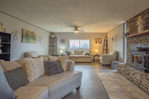 - Blinds, Ceiling Fans, Pantry, Woodstove
