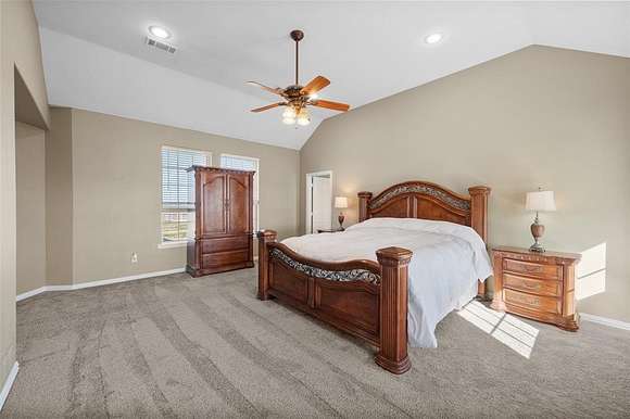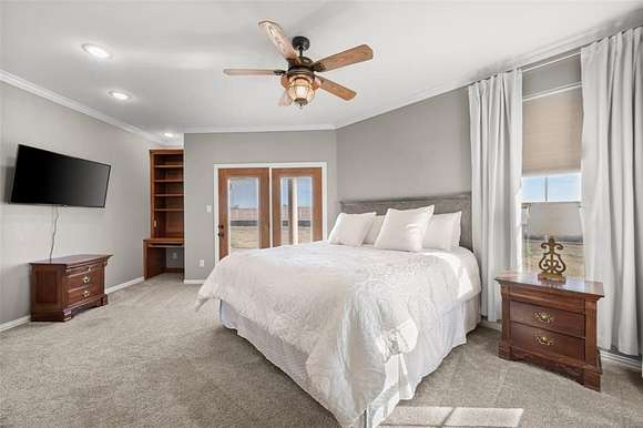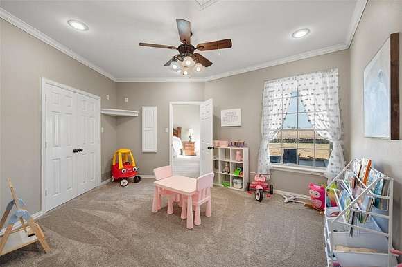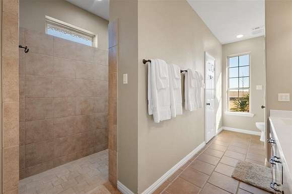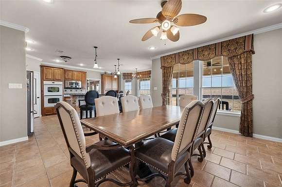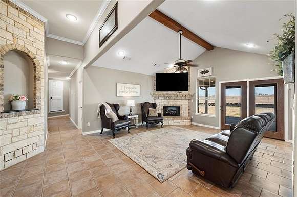 Welcome to your dream ranch retreat! This expansive 5-bedroom, 4-bathroom home offers the perfect balance of luxury, comfort, and functionality. Situated on 102.97 acres, this estate is designed for both elegant living and the ultimate ranching lifestyle. The spacious master suite features a faux French doors that lead to the patio, walk-in tile shower, double sinks, and a generous walk-in his and hers closets.