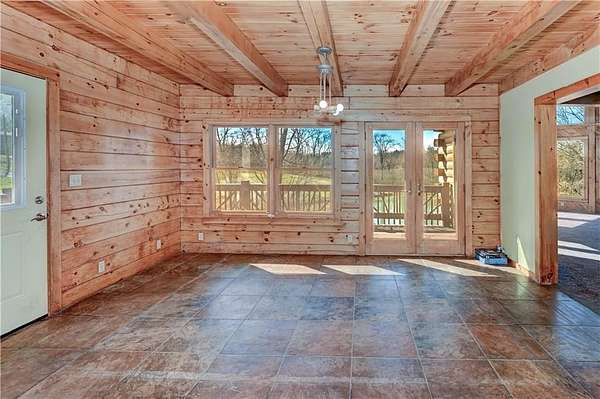 PRIVATE RETREAT ON 10.7 ACRES! If you've been looking for that perfect mix of privacy, land, and character-this is it. True log cabin sitting on 10.7 beautiful acres with a stocked pond and a LONG driveway with two separate entrances giving you the ultimate seclusion. Inside you'll find over 3,400+ square feet with large windows that bring in tons of natural light and overlook the property. Spacious layout with 3 bedrooms, 3 full bathrooms, and 1 half bath. Plenty of room to spread out while still keeping that cozy cabin feel. Outside features a 2 car detached garage and wide open space in every direction. Whether you're wanting to fish or just enjoy the quiet. This property checks all the boxes. Hard to find this kind of setup with acreage, water, and a home like this all in one. Schedule your showing today.