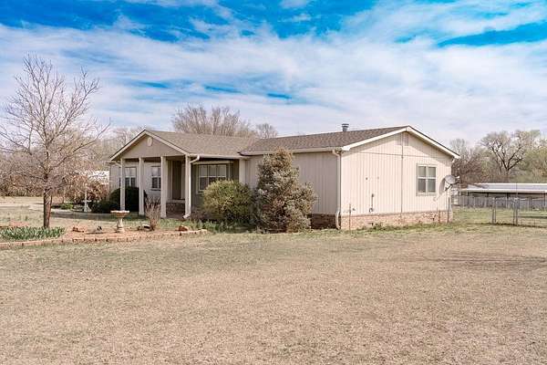 This Home sits in a Happy Holler with a Long Driveway that is lined with white Bradford Pears welcoming you into the Oklahoma Countryside. This Firmly Attached, Doublewide Solitaire is on a solid foundation that faces the sunsets with views that can't be beat on the prairie. It has 3 bedrooms and 2 baths and is on 17 acres that has a pond, fencing, cow lot with W&W cow panels, a 20x40 cow barn that opens to the south, larger 40x60 barn with 20x60 lean to, 2 chicken coops, a few barns with chain link fence and cement slabs which were used as kennels, raised beds for a garden, water well, covered back porch patio, and man made water fall/pond. Pinterest Perfect right here! The Roof was replaced 6 months ago with 4 star heavy shingles. Hot water heater is only 3-4 years old. The house has reverse osmosis & is serviced by Culligan. The water well has a softener also! The natural gas line was replaced with new poly line 9 months ago. This is a very well maintained spread. Setup perfectly for your hearts desire. Homesteading at its best only 15 minutes approx. to Sayre, Ok. And approximately 30 to Elk City, Ok. Come set your roots in the Oklahoma soil on the Country side of Sweetwater,America where the grass waves and the sun smiles and the stars kiss you good night. Oklahoma Love at its Best!