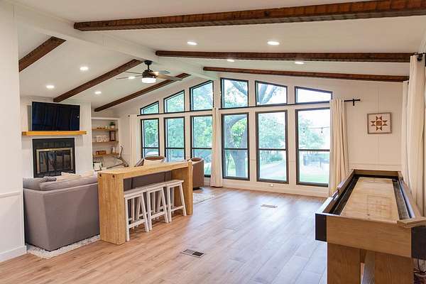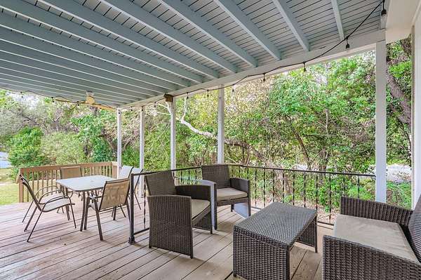 Experience the ultimate in Texas Hill Country luxury at this private Lake Travis retreat, set on six pristine acres with direct DEEP water lake access. This single-story, three-bedroom, two-bathroom home combines modern comfort with resort-style living-just 35 minutes from downtown Austin. Situated on one of the deepest sections of Lake Travis, this rare property has maintained water access even when it was at its most recent lowest in 2023 at 626 feet.. Enjoy a flat walk to the lake, perfect to add your private dock, ideal for boating, swimming, and lakeside relaxation. The expansive backyard offers a sparkling private pool with depths from 3 to 9 feet, a covered patio for outdoor entertaining, and a fire pit for starlit gatherings-all surrounded by scenic Hill Country views. Recent updates include remodeled bathrooms, new flooring, and fresh interior paint, creating a turnkey environment ready for immediate enjoyment. The property's proven success as a high-performing short-term rental makes it an exceptional investment opportunity, whether you're seeking a primary residence, vacation home, or income-producing asset. The six-acre setting offers both wooded tranquility and open recreational space-perfect for outdoor activities, events, or future expansion. Furniture is available for purchase, allowing a seamless transition into lake living or continued rental operation. A rare combination of privacy, income potential, and enduring waterfront access, this Lake Travis estate captures the essence of luxury lake living in the Texas Hill Country.
