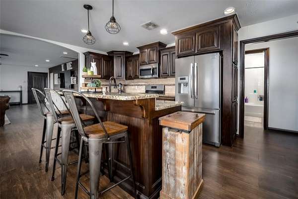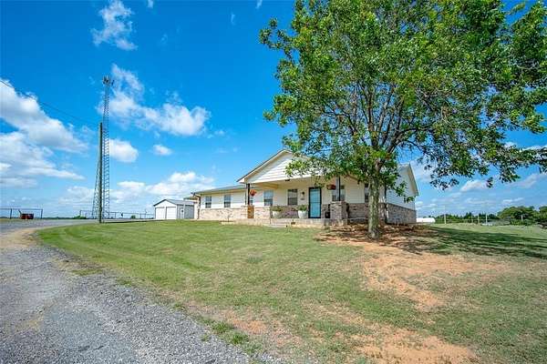 Are you ready to escape the hustle and bustle of city living and find your piece of paradise in the countryside? This charming dream home sits IN ALEX SCHOOL DISTRICT on 50 acres of land and boasts a completely remodeled interior with fresh paint. 4 bedrooms, 2 baths, large living room, and a kitchen with an island and dining space! Enjoy modern farmhouse touches of a wood accent wall, wood look tile, granite countertop and much more. The property is equipped with pipe fencing and features a carport, 2 ponds and 2 shops with plenty of room for storage, working and parking. Don't miss out on this incredible opportunity to live the country life. Paved roads to the home, easy access to the highway and SELLER is extremely motivated!