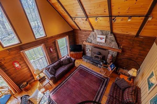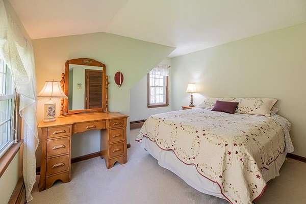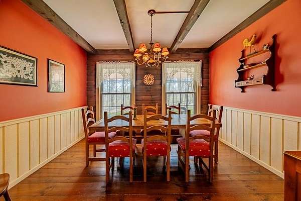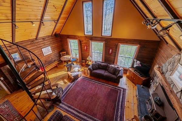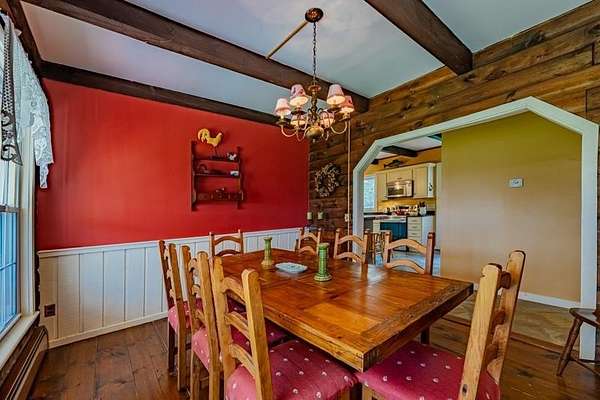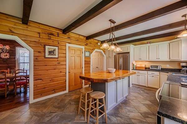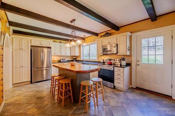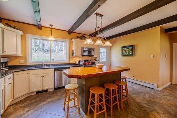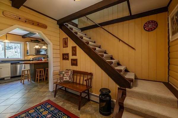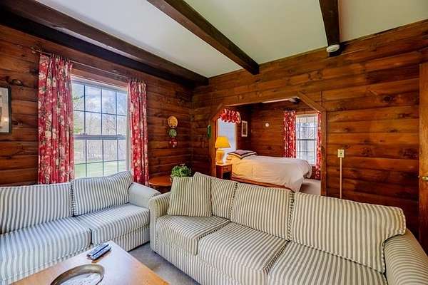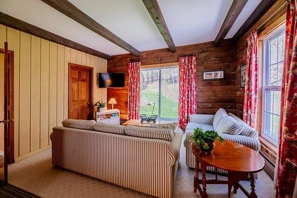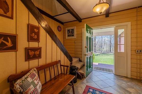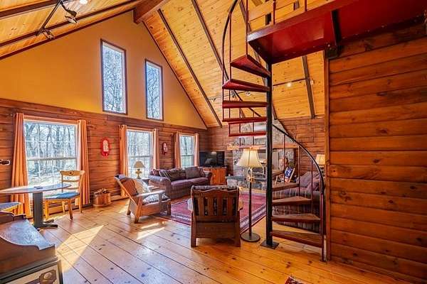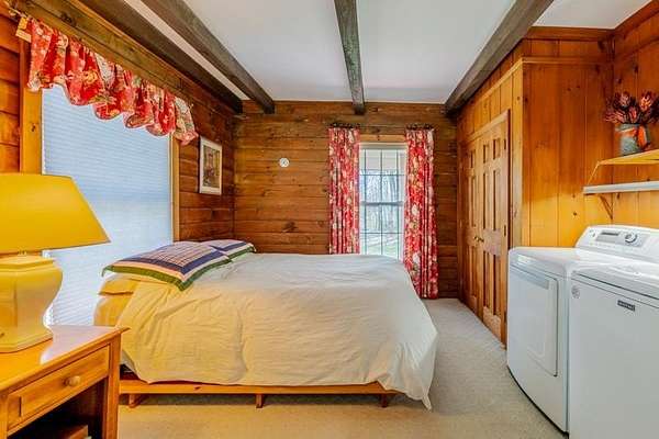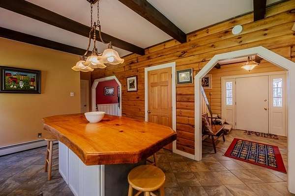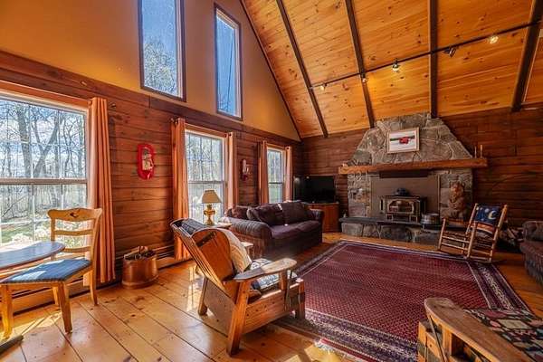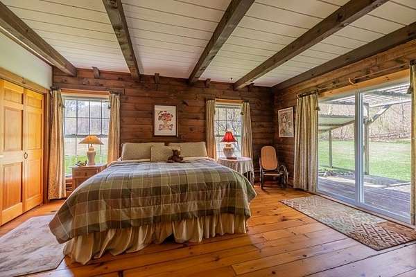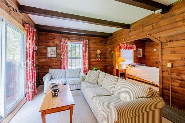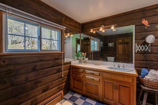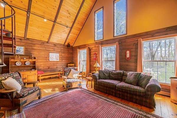 Welcome to this beautifully maintained log home nestled on a open four-acre lot in the heart of Manchester Center. With over 3,200 square feet of thoughtfully designed living space, this 4 bedroom, 3.5 bathroom residence delivers the perfect blend of rustic charm and modern comfort. Step inside to discover a stunning great room anchored by a stone fireplace, soaring windows that flood the space with natural light, and a charming loft overlooking the gathering area below. The sun-drenched kitchen features a gorgeous center island with views of the backyard, flowing seamlessly into an intimate dining room ideal for memorable meals. The main-floor primary bedroom suite offers sliders leading to a spacious deck, while the private bath boasts a generous jacuzzi tub and shower for ultimate relaxation. A separate in-law suite on the first floor provides flexible living arrangements for extended family or guests. Upstairs, three additional bedrooms, a full bath, and a cozy sitting area ensure everyone has room to spread out. A four-car garage with additional basement storage rounds out the practical amenities. Outside, the generous acreage presents endless possibilities for gardens, play areas, or evening bonfires. Sip your morning coffee on the front porch while taking in seasonal mountain views, or lace up your boots and explore the neighboring conservation area trails. Located near the Southern Vermont Arts Center and all of Manchester's shops and restaurants, this property pairs country living with cultural enrichment. Quality craftsmanship topped with a brand-new roof makes this one worth seeing. Schedule your private tour today.