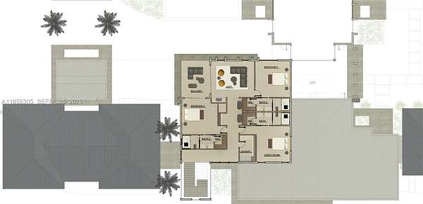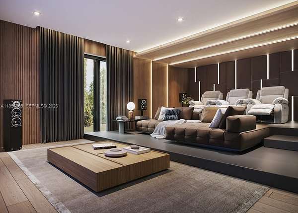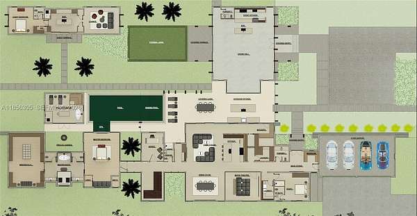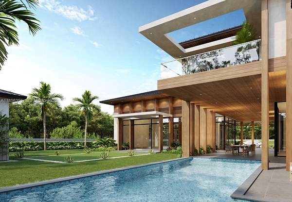 One-of-a-Kind Architectural Masterpiece - Designed by famed Affinity Architects, this 6BR, 6BA, 3HB estate is situated on over 2 acres of land offering refined living with exceptional design. The flexible layout allows for 7+ bedrooms. This rare and unforgettable Bali inspired architecture blends natural materials, open layouts, and intricate craftsmanship, focusing on nature through walled compounds of separate pavilions for different functions, creating indoor-outdoor living with abundant ventilation and connection to gardens overlooking a pool, shaded lounge, and spa. Amenities include: a wellness room with sauna, private movie theatre, 2 family rooms, staff quarters, mud room, and 2 laundry rooms. A 4-car garage plus guest parking ensures ample space. Every detail reflects quality craftsmanship, timeless style, and a seamless connection between indoor and outdoor living.
