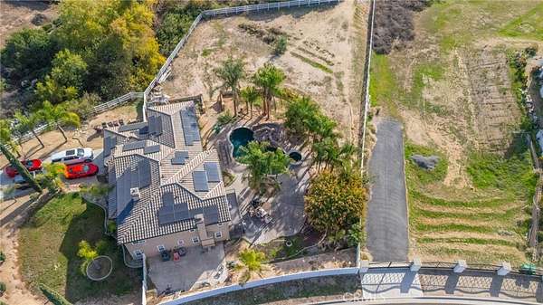 Rear yard features a newly re-plastered Pebble-Tech pool featuring a water fall Grotto, slide and separate spa. Rear yard boasts 180 degree views of sunsets and hills, and rear yard providing steps down to expansive rear lot area with plenty of room for expansion on a quiet, peaceful yard for your year round enjoyment. Solar features 55 panels for "nill" on the electric bills.
